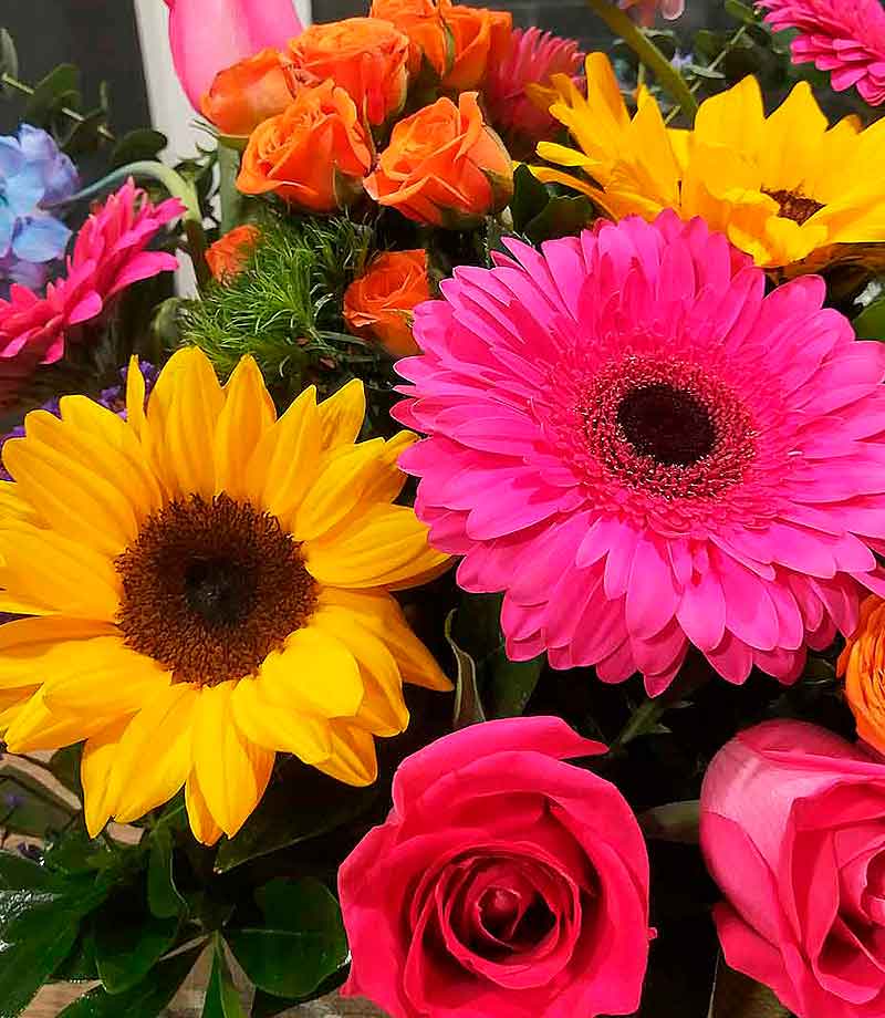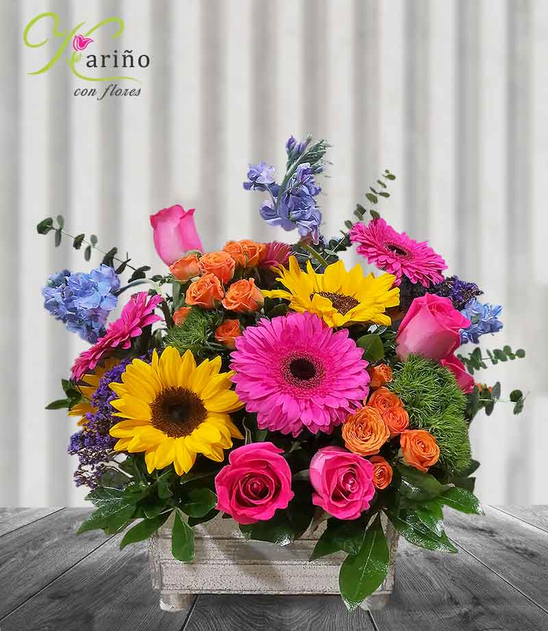Diseño floral con una explosión de color encantadora. Estas flores animaran por completo a tu ser querido.